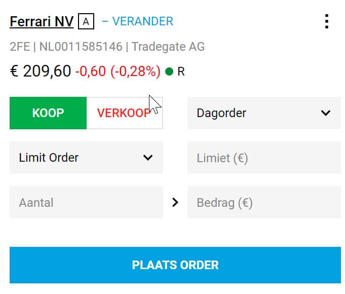 4. Kies tussen een marktorder (direct) of een limiet order (later)